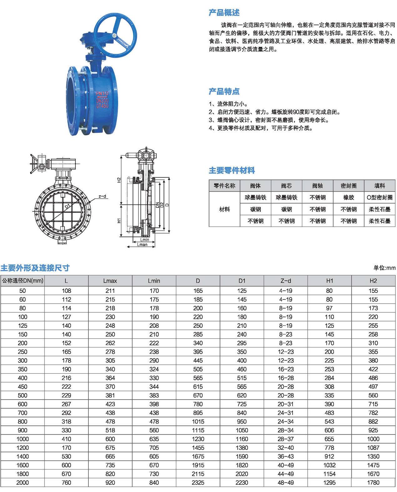 口徑:DN50~DN2000mm